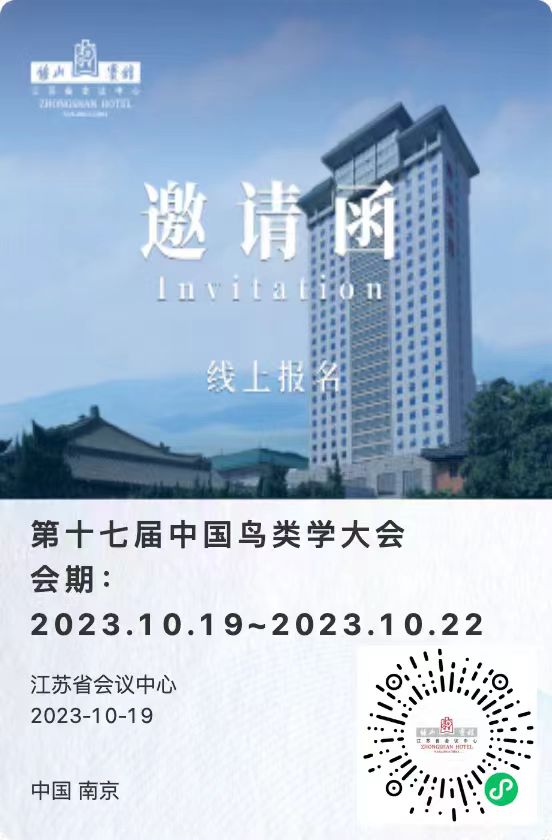 “第十七届中国鸟类学大会”会议酒店有2个,分别为:江苏省会议中心,南京黄埔大酒店 二维码酒店预定。即日起,可以扫码以下二维码预定,如有问题咨询请致电图片中预留电话。